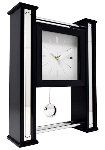 Details About Modern Black Wood Silver Chome Base Wall Or Mantel Clock With Moving Pendulum
